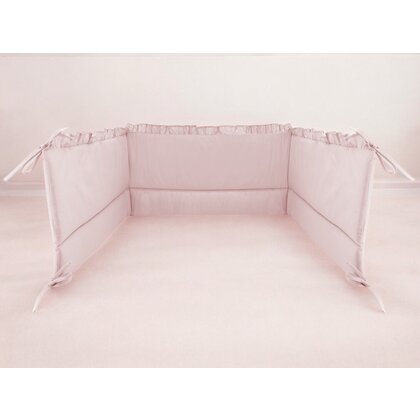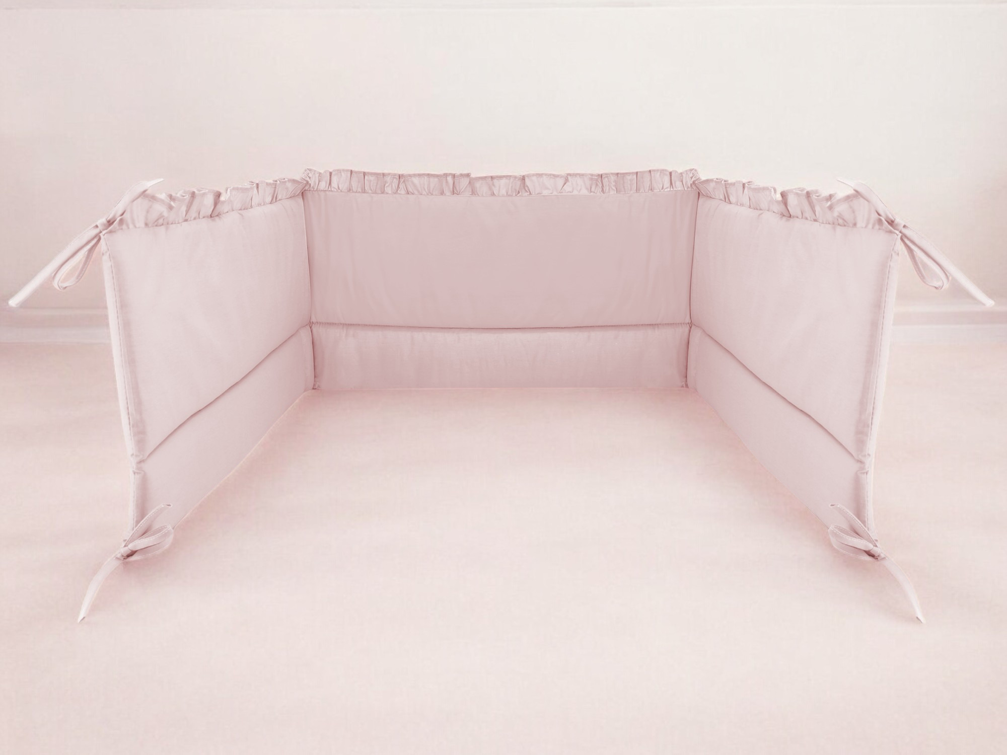 Aparatoare pentru patut, MimiNu, Cu volanase, Din bumbac certificat Oeko Tex Standard 100, 180x30 cm, Cu panglici, Colectia Royal, Powder Pink