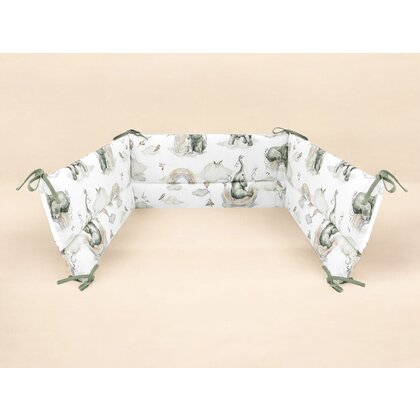 Aparatoare pentru patut, Qmini, Din bumbac certificat Oeko Tex Standard 100, 180x30 cm, Cu panglici, Elephants on Rainbow