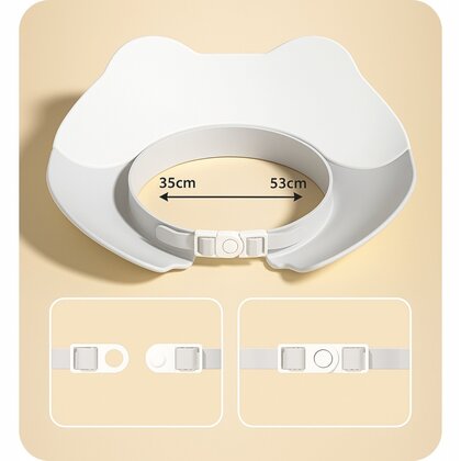 Forma specială protejează ochii, fața și urechile copilului împotriva stropilor, reducând disconfortul și lăcrimarea în timpul băii.