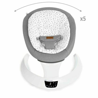Moon este hamacul electric ideal pentru acele momente in care ai nevoie de o pauza, dar vrei sa stii ca bebelusul tau se afla intr-un loc sigur, confortabil si linistitor. Cu 5 viteze de leganare, 17 sunete relaxante, timer, telecomanda si un design compact, Moon iti ofera control total si liniste sufleteasca – oriunde in casa.