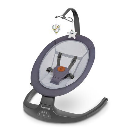 Balansoar si sezlong, Lionelo, Ralf, 2 in 1, Electric, Cu telecomanda si cablu USB, Cu miscare laterala de balansare si 5 niveluri diferite de viteza, Cu 12 melodii, Gri Grafit, Resigilat