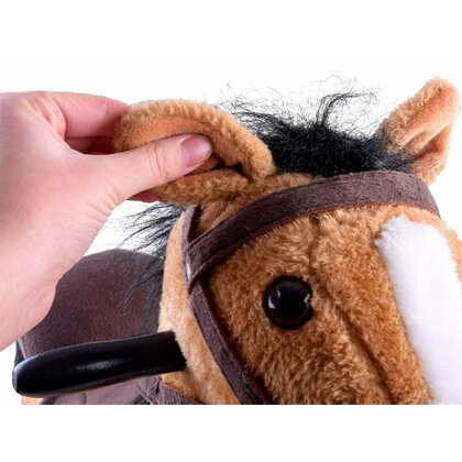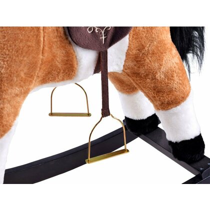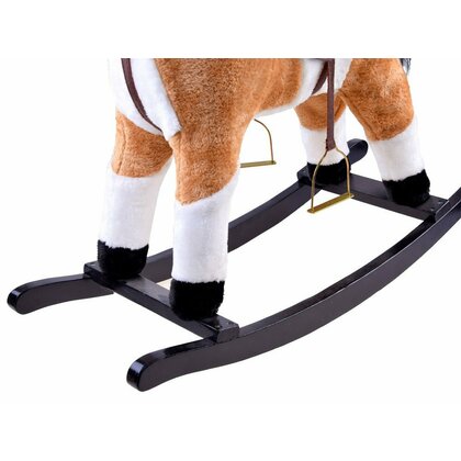 Calut balansoar, Jokomisiada, Cu platforma din lemn, Cu sunete de galop, Din plus moale, 70x73x28 cm, Alimentare pe baza de baterii, 3 ani+, Light Brown