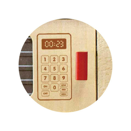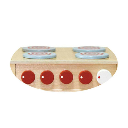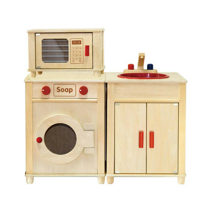 Setul cuprinde: un frigider/dulap, o masina de spalat vase, un aragaz cu 4 ochiuri, o chiuveta, un cuptor cu microunde. Bucataria este confectionata din lemn natur, cu accesorii rosii. Acesta ofera un cadru placut in care copiii isi pot exersa abilitatile sociale prin jocul de grup, indemanarea, imaginatia.