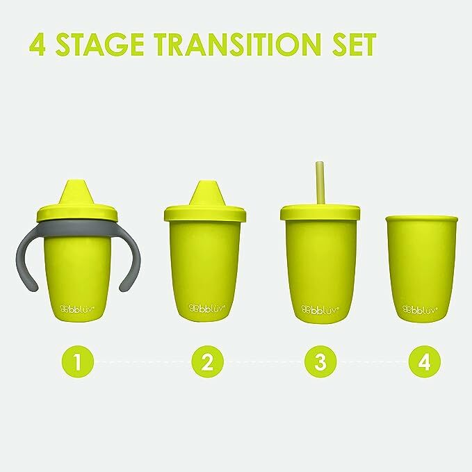 Canuta, Bbluv, Kup, 4 in 1 cu pai, manere si capac, Silicon, Fara BPA, 240 ml, Lime
