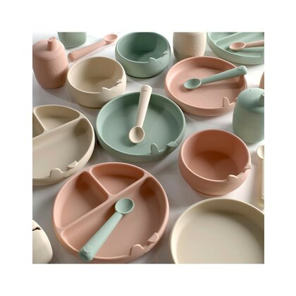 Set de masa, Jane, Din silicon, 2 piese, Cu bol si lingurita, BPA Free, Mint