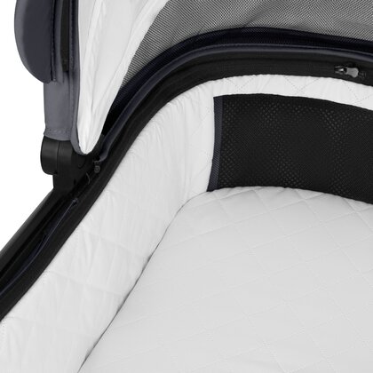 Salteaua din spuma ferma, optima pentru sustinere, dotata cu sistemul AiryDots, ofera o circulatie excelenta a aerului, asigurand confortul bebelusului. Fereastra de plasa generoasa din capotina si landou ofera ventilatie suplimentara, usor de reglat cu magneti ascunsi discret.