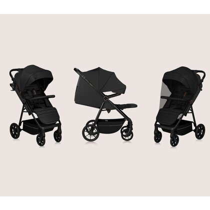 Carucior sport, Lionelo, Mira, Maner reglabil in 5 pozitii, Spatar si suport de picioare reglabile, Plasa de tantari si suport biberon incluse, Pana la 22 kg, 6 luni+, Conform cu EN1888-1, EN1888-2, Testare SGS, Negru