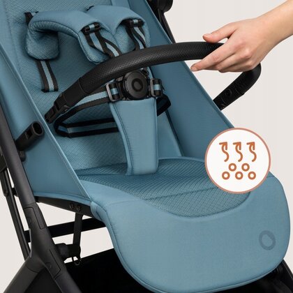 Tapiteria Dri‑Seat asigura ventilare optima si evacuarea umezelii, mentinand copilul confortabil chiar si in plimbarile mai lungi.