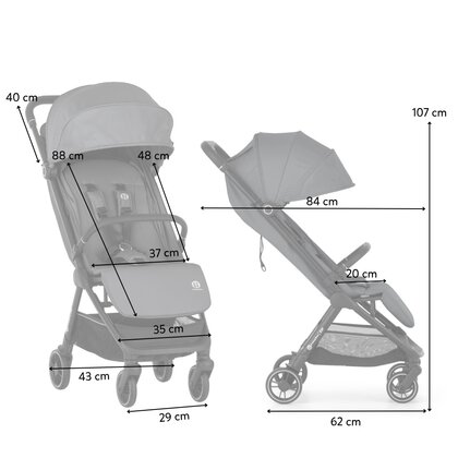 Caruciorul ZIP respecta dimensiunea bagajului de cabina atunci cand este pliat, astfel incat il poti lua cu tine in avion sau depozita in portbagaje foarte mici. Cu o greutate de doar 7 kg, poate fi transportat usor cu o singura mana. Dispune si de o curea de transport confortabila.