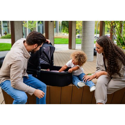 Scaunul caruciorului poate fi pozitionat cu fata spre directia de mers sau spre parinte. Unghiul scaunului este reglabil pana la o pozitie complet orizontala, permitand copilului sa adoarma mai usor. Caruciorul vine cu o serie de accesorii utile, inclusiv adaptoare universale, care permit atasarea unui scaun auto direct pe cadru-ideal atunci cand copilul adoarme in masina.
