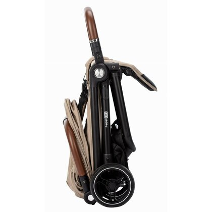 Se pliaza automat la apasarea unui singur buton pe maner si ramane in pozitie verticala, ocupand putin spatiu (doar 57.5 × 48.5 × 29 cm cand este pliat). Perfect pentru depozitare in portbagaj sau calatorii cu avionul.