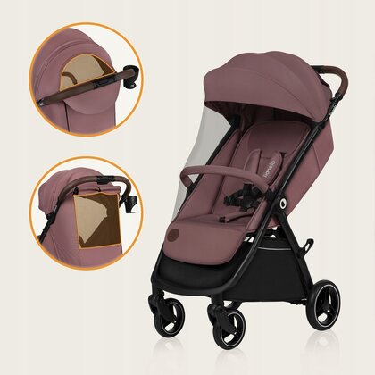 Carucior sport, Lionelo, Ingrid, Capotina impermeabila cu filtru UPF50+, Pana la 22 Kg, Spatar reglabil in 3 pozitii, Include suport pahar si plasa de tantari, Sistem pentru pliere automata, 6 luni+, Roz