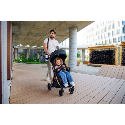 Reglarea in 3 trepte a spatarului, cu posibilitatea asezarii pe spate, asigura confort in timpul fiecarei plimbari. Panoul panoramic inovator de ventilatie, aflat in spatele spatarului, asigura circulatia aerului chiar si in cele mai calduroase zile.