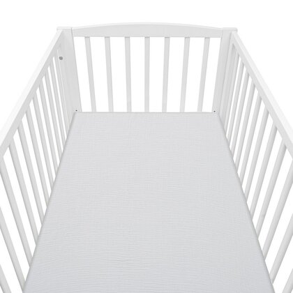 Cearceaf cu elastic, New Baby, Din muselina, Pentru patut 120x60 cm, Din bumbac, 90x150 cm, Certificat Oeko Tex Standard 100, Grey