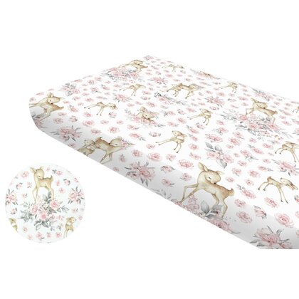 Cearceaf cu elastic, MimiNu, Pentru pat 160x80 cm, Din bumbac certificat Oeko Tex Standard 100, Sweet Deer Pink