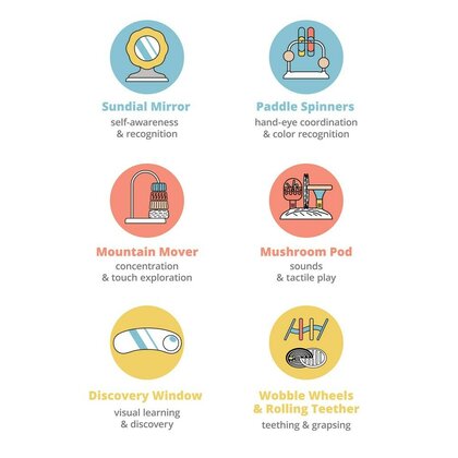 - Discovery Window™ – permite copilului să privească sub picioare și să descopere relația cauză-efect;