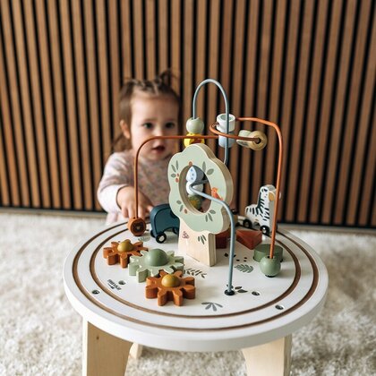 Masuta Montessori cu activitati, Free2Play, Cu multiple activitati, Dezvolta coordonarea ochi-mana, Din lemn, 18 luni+, Think and Play
