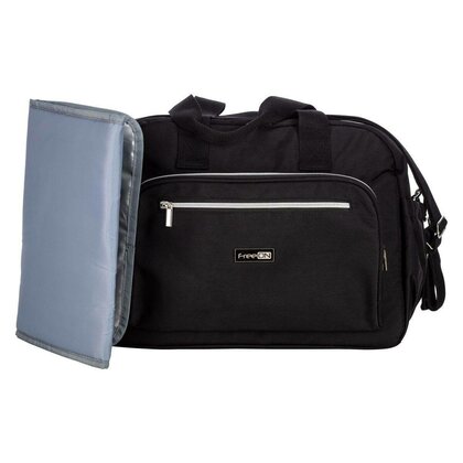 Geanta pentru scutece, FreeON, Style, Impermbeabila, Cu multiple buzunare, Dimensiune compacta, 39x32x18 cm, Black