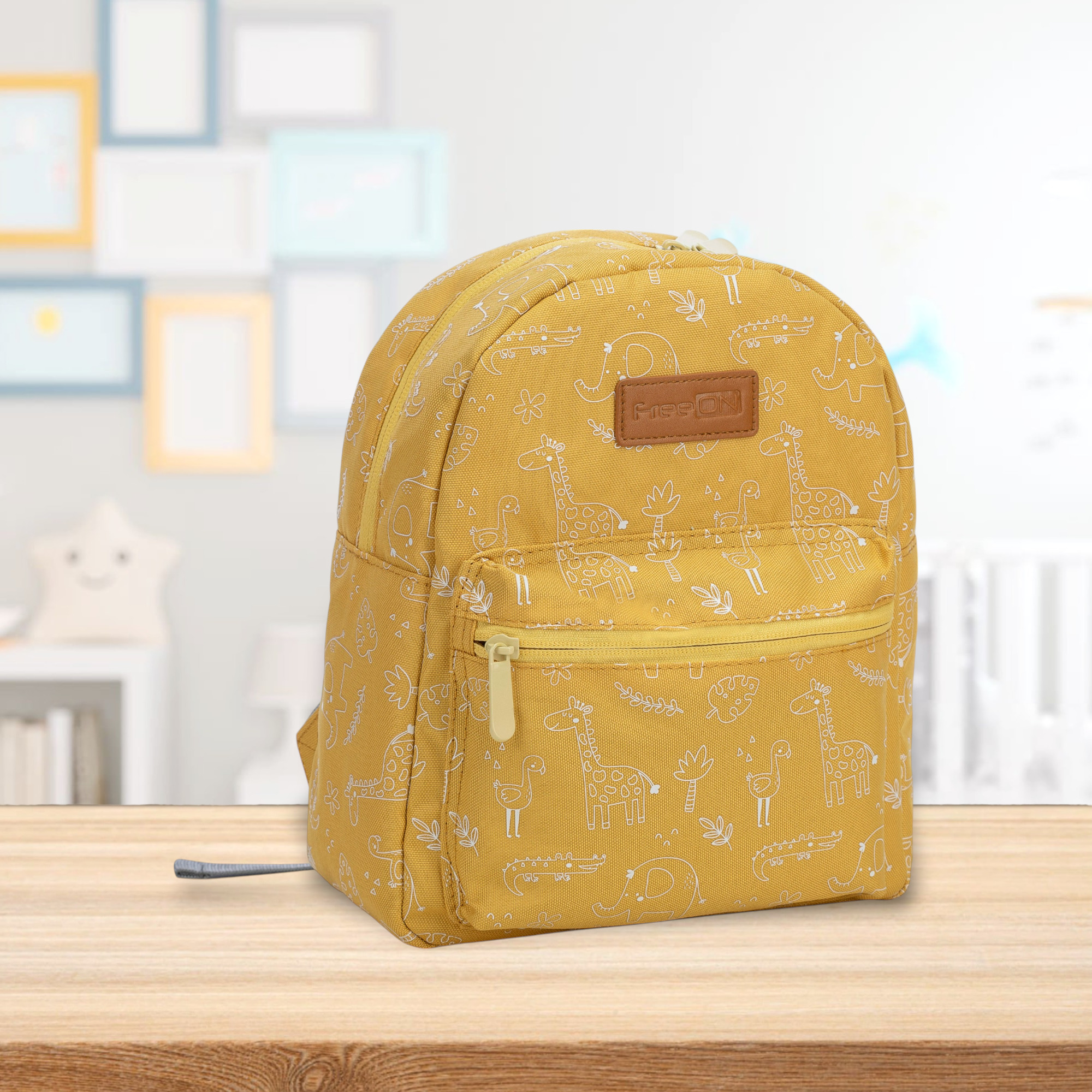 Rucsac pentru copii, FreeON, Small animals, Cu doua compartimente, Cu bretele reglabile, Dimensiune 21 x 9 x 27 cm, Yellow