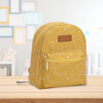Acest rucsac este prevazut cu un motiv dragut si colorat, creat special pentru a aduce zambete si a deveni preferatul copilului tau. Cu o culoare vesela – galben intens – si o forma compacta, este usor de purtat si atrage atentia oriunde ar merge cel mic.