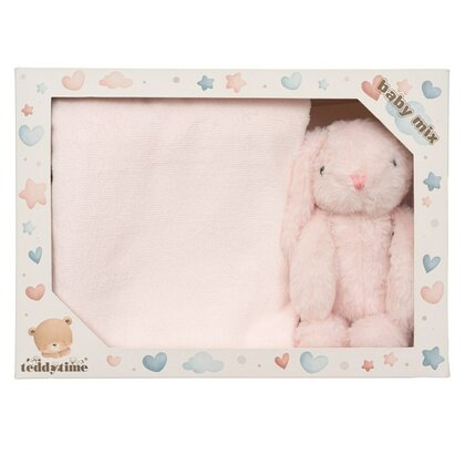 Set cadou iepuras roz cu prosop, Baby Mix, In cutie de carton, Pink