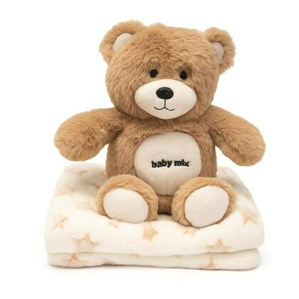 Set cadou ursulet brun cu paturica, Baby Mix, In cosulet din material textil, Brown