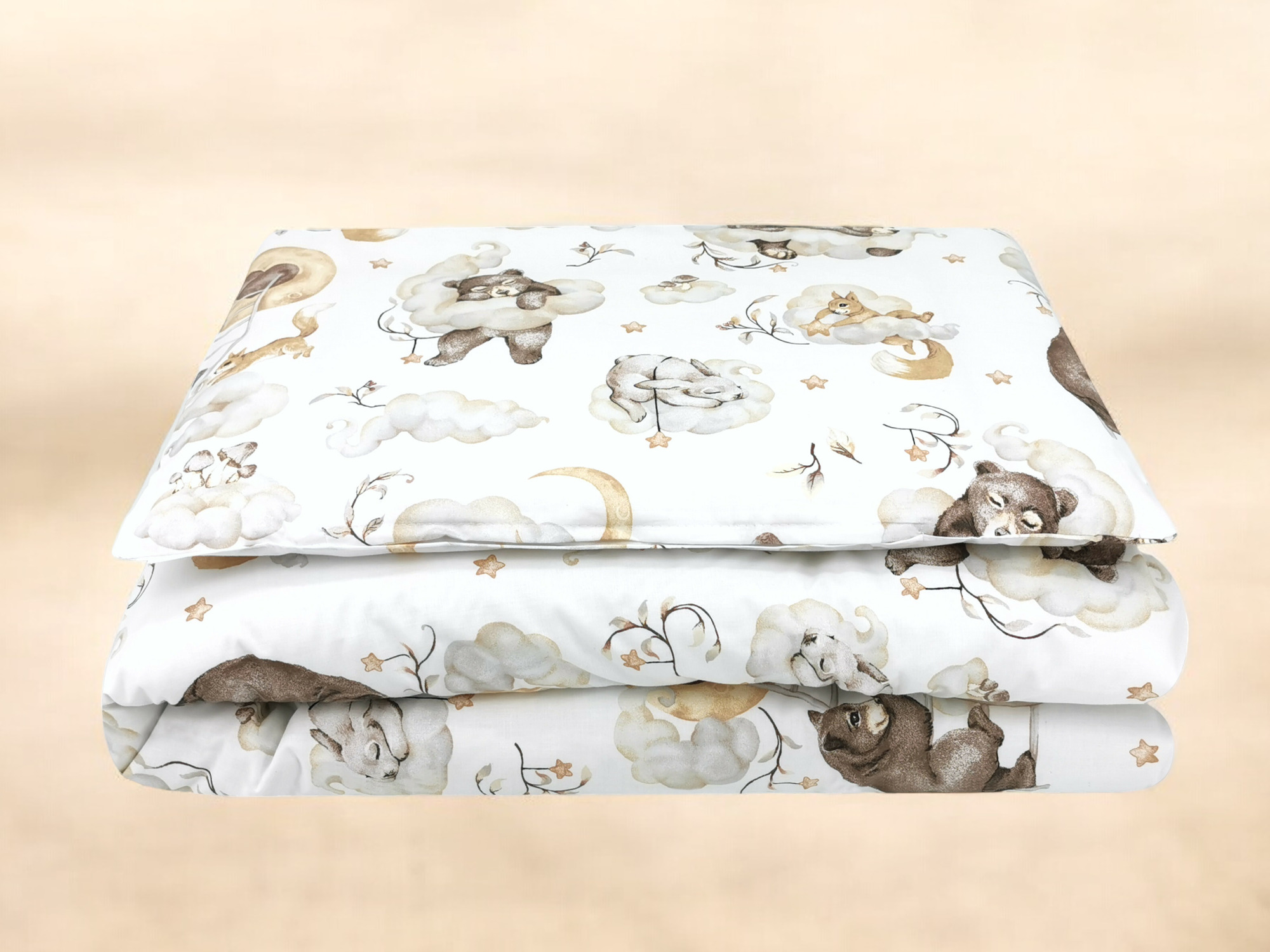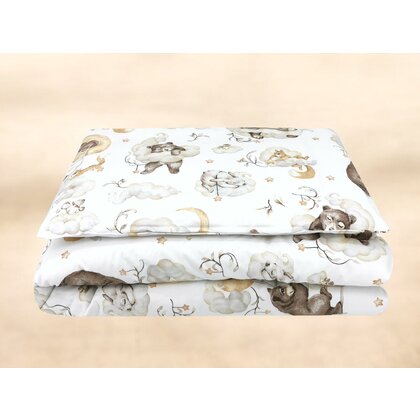 ❤️Set de pat pentru juniori 140x200 cm – Bumbac 100% – Teddy Bear and Friends Beige – Qmini