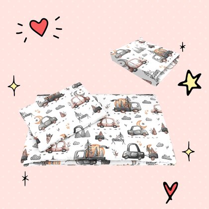 ⭐ Set lenjerie 3 piese pentru patut – MimiNu – Colectia Cars Grey