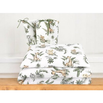 Lenjerie patut 3 piese, Qmini, Pentru patut 120x60 cm, Cu protectie laterala, Din bumbac certificat Oeko Tex Standard 100, Safari