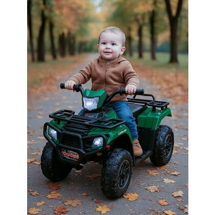 ATV electric copii, Baby Mix, Quad, Pana la 25 kg, Cu 3 viteze, Cu indicator digital al bateriei, Cu sunete si lumini, Sezut confortabil, Cu roti rezistente, 36 luni+, Green