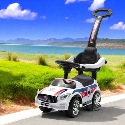 Masinuta de impins are un aspect atractiv inspirat de vehiculele reale de interventie medicala, cu forme bine definite, culori vii si detalii atent finisate – toate contribuind la stimularea imaginatiei si la dezvoltarea jocurilor de rol. Cu functii multiple si componente detasabile, poate fi folosita in mai multe etape de dezvoltare, adaptandu-se perfect nevoilor copilului.