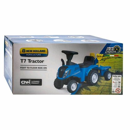 Tractor, Baby Mix, New Holland, Pana la 25 kg, Cu remorca detasabila si unelte, De impins, Cu claxon si sunet de motor, 12 luni+, Yellow