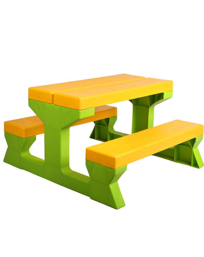 Set gradina, Star plus, Cu masa si 2 bancute, Pentru copii, Pana la 100 kg, Din plastic de inalta calitate, 77x83x48 cm, Green/Yellow