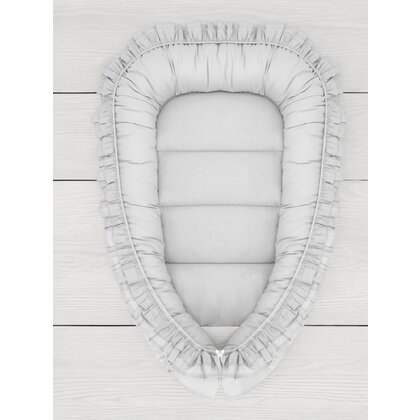 Cosulet bebelus, MimiNu, Pentru dormit, Baby Nest 55 x 75 cm, Cu Volanase, Husa 100% bumbac, Din bumbac certificat Oeko Tex Standard 100, Colectia Royal, Grey