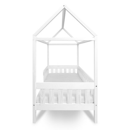 Patut tip casuta din lemn junior, 160x80 cm, Pana la 70 Kg, Cu bariera de protectie, Conform cu EN 716-1:2008, EN 716-2:2008, New Baby, Castello, White