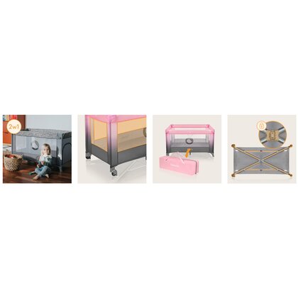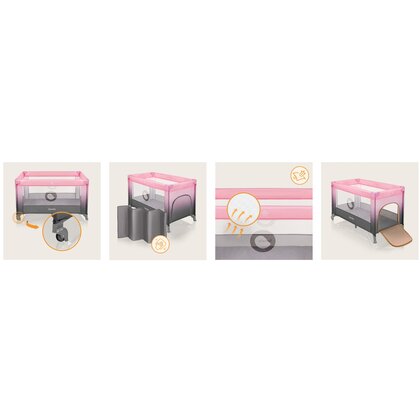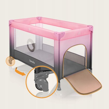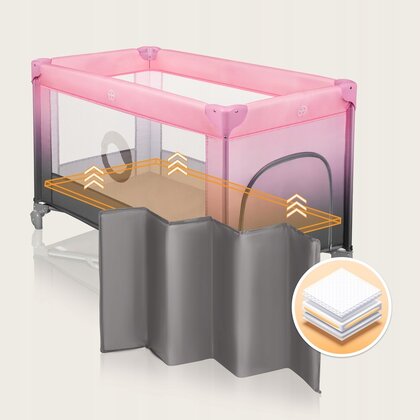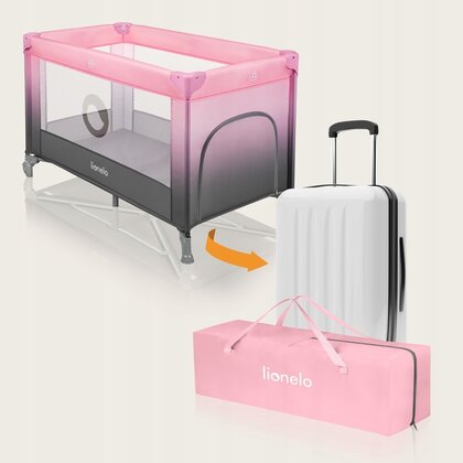 Patut pliant, Lionelo, Stefi, Cu un nivel, Cu intrare laterala cu fermoar, 2 roti, 120x60 cm, Conform cu standardul european de securitate EN 716, Roz Ombre