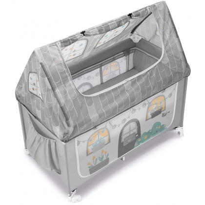 Patut pliant voiaj cu doua niveluri de inaltime, ultraportabil pentru copii Daily Dolci Sogni , usor de transportat, ideal pentru calatorii, material rezistent cu protectii laterale si saltea inclusa