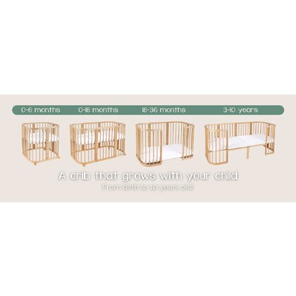 Patut Rotund Evolutiv, Waldin, 7in1 Natur, Saltele Incluse, Transformabil, Masa de Schimbat, Co-Sleeping, Tarc de Joaca, Birou, Scaune