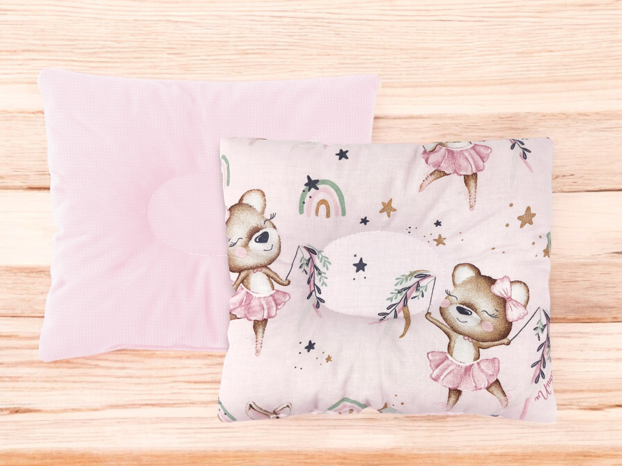 Perna bebelus, MimiNu, Profilata, Cu doua fete, Cu functie anti-soc, Pufoasa, Din catifea si bumbac, Materiale certificate Oeko Tex Standard 100, 23x26 cm, Velvet Little Ballerina Pink