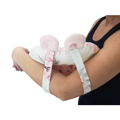 ✔️ Dotata cu bretele practice pentru fixare pe antebratul mamei – ideala si ca perna pentru alaptare.