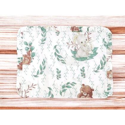 Perna clasica de dormit, MimiNu, Cu volanas, Cu husa detasabila cu fermoar, Din bumbac certificat Oeko Tex Standard 100, Pentru patut, carucior, balansoar, 30x40 cm, Lulu Natural