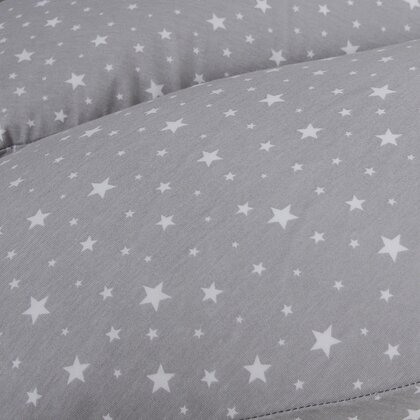 Perna pentru alaptat, Ceba Baby, Husa detasabila din bumbac, Cu puf siliconizat, 150x60x37 cm, Oeko-Tex Standard 100, Basic Grey Stars