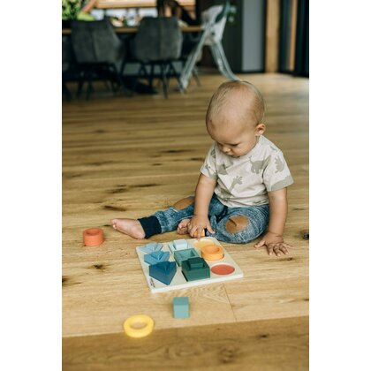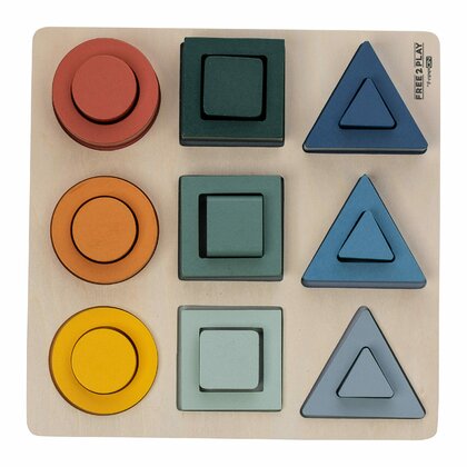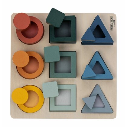 Puzzle copii, Free2Play, Din lemn, Cu sortare forme, Incurajeaza imaginatia, Dezvolta abilitatile motorii fine si coordonarea ochi-mana, 22,2x22,2x4,2 cm, 12 luni+, Multcolor