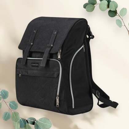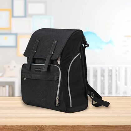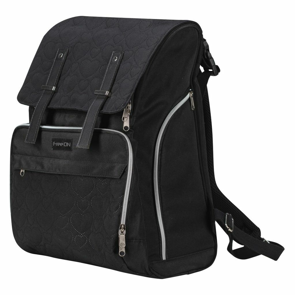Rucsac pentru mamici, FreeON, Black Edition, Cu salteluta de schimbat scutece, Spatios, Cu buzunare laterale, Negru