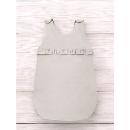 Sac de dormit, MimiNu, Pentru bebelusi, De iarna, Cu volanase, Din bumbac certificat Oeko Tex Standard 100, Cu fermoar lateral, Cu capse pe umar, 70 cm, 0 - 6 luni, 2.5 Tog, Colectia Royal, Beige