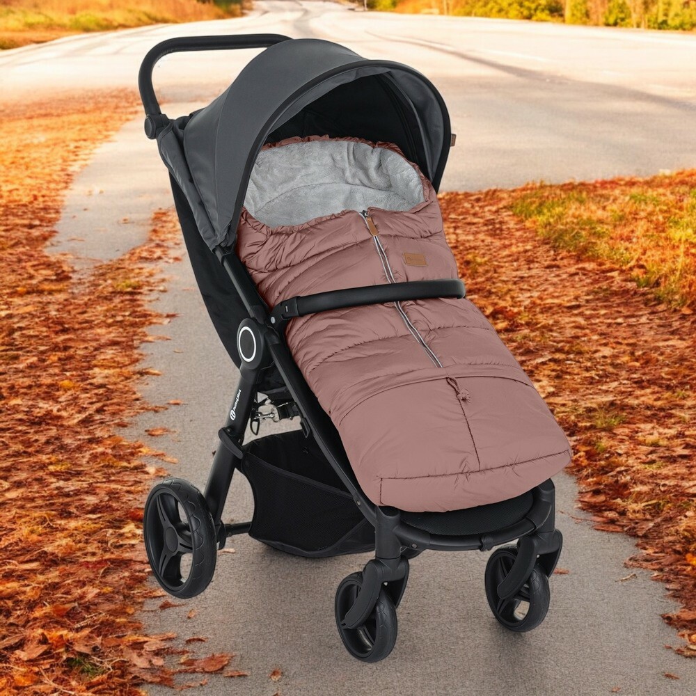 Sac de iarna, Petite&Mars, Jibot, Pentru carucior, landou sau scaun auto, 100x48 cm, Impermeabil, Cu elemente reflectorizante, Extensibil, 3 in 1, Dusty Pink