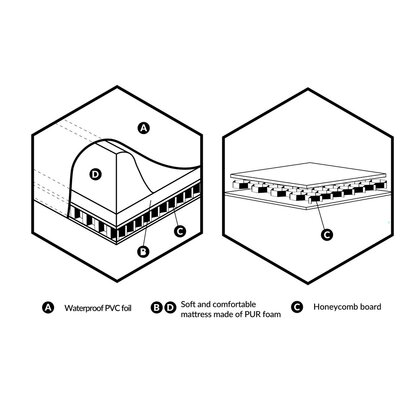 Fabricata din folie PVC de calitate superioara, fara ftalati si alte substante nocive.