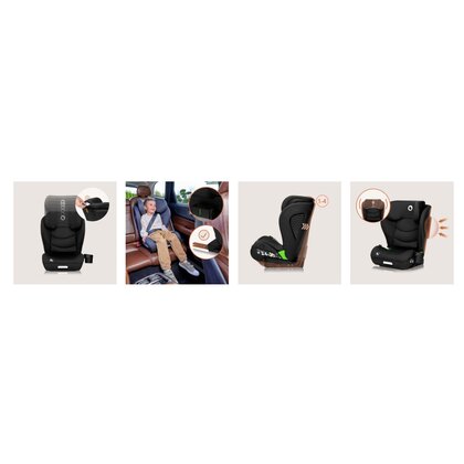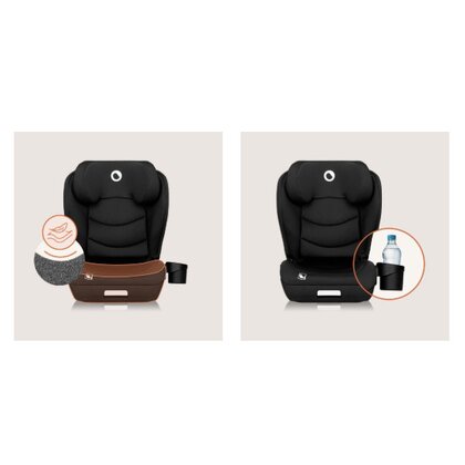 Scaun auto i-Size, Lionelo, Neal, Spatar reglabil in 4 pozitii, Tetiera in 10 pozitii, Suport sticla inclus, 15-36 Kg, 100-150 cm, Cu Isofix, Conform ECE R129, Negru