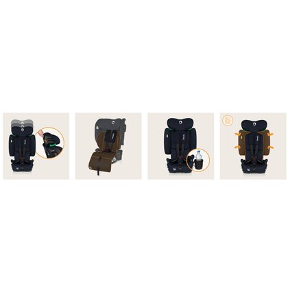 Reglarea inclinarii spatarului creste nivelul de siguranta si confort in timpul calatoriei. Ajuta la pozitionarea corecta a copilului si impiedica capul sa cada in fata in timpul somnului. De asemenea, asigura o potrivire optima in orice masina – spatarul se poate sprijini ferm de bancheta.