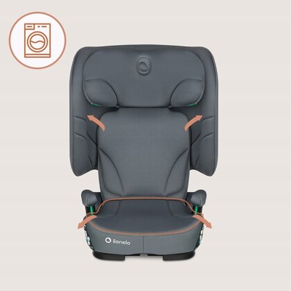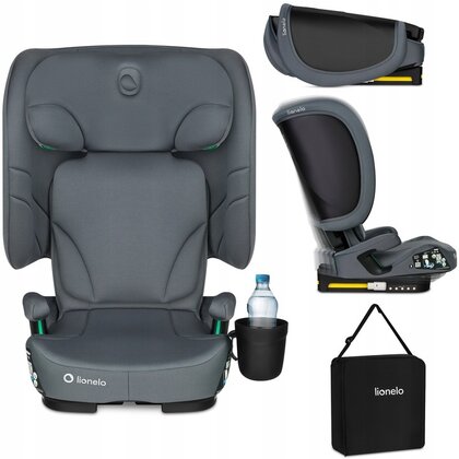 Scaun auto pliabil, Lionelo, Orin, i-Size, 100-150 cm, Tetiera reglabila in 14 pozitii, Spatar in 4 pozitii, Isofix+Top Tether, Sezut ergonomic, Husa transport, Suport sticla, Gri Grafit